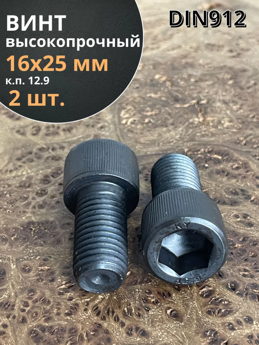 Винт высокопрочный ПР М16х25 мм к.п.12.9 черный DIN912, 2 шт.