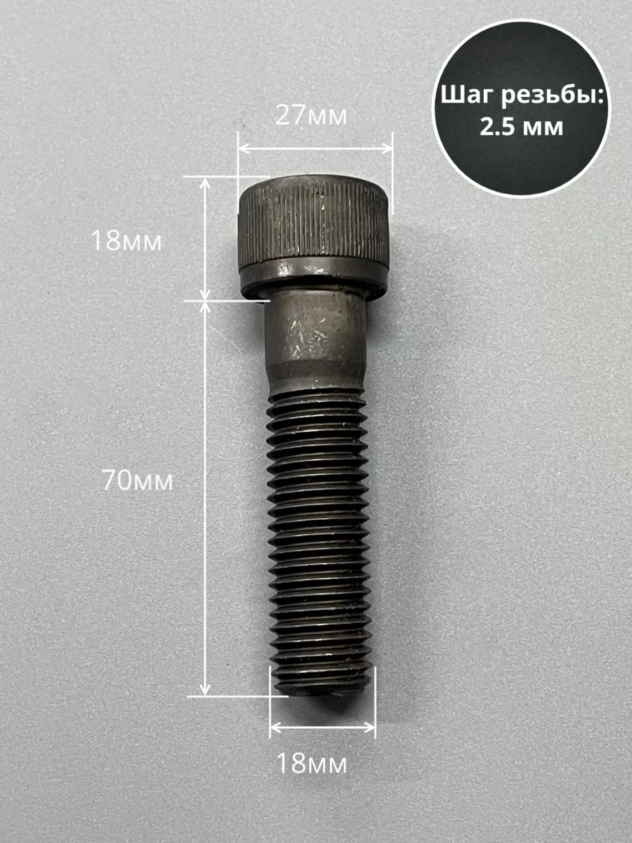 Винт высокопрочный НР М18х70 мм к.п.12.9 черный DIN912, 2 шт.