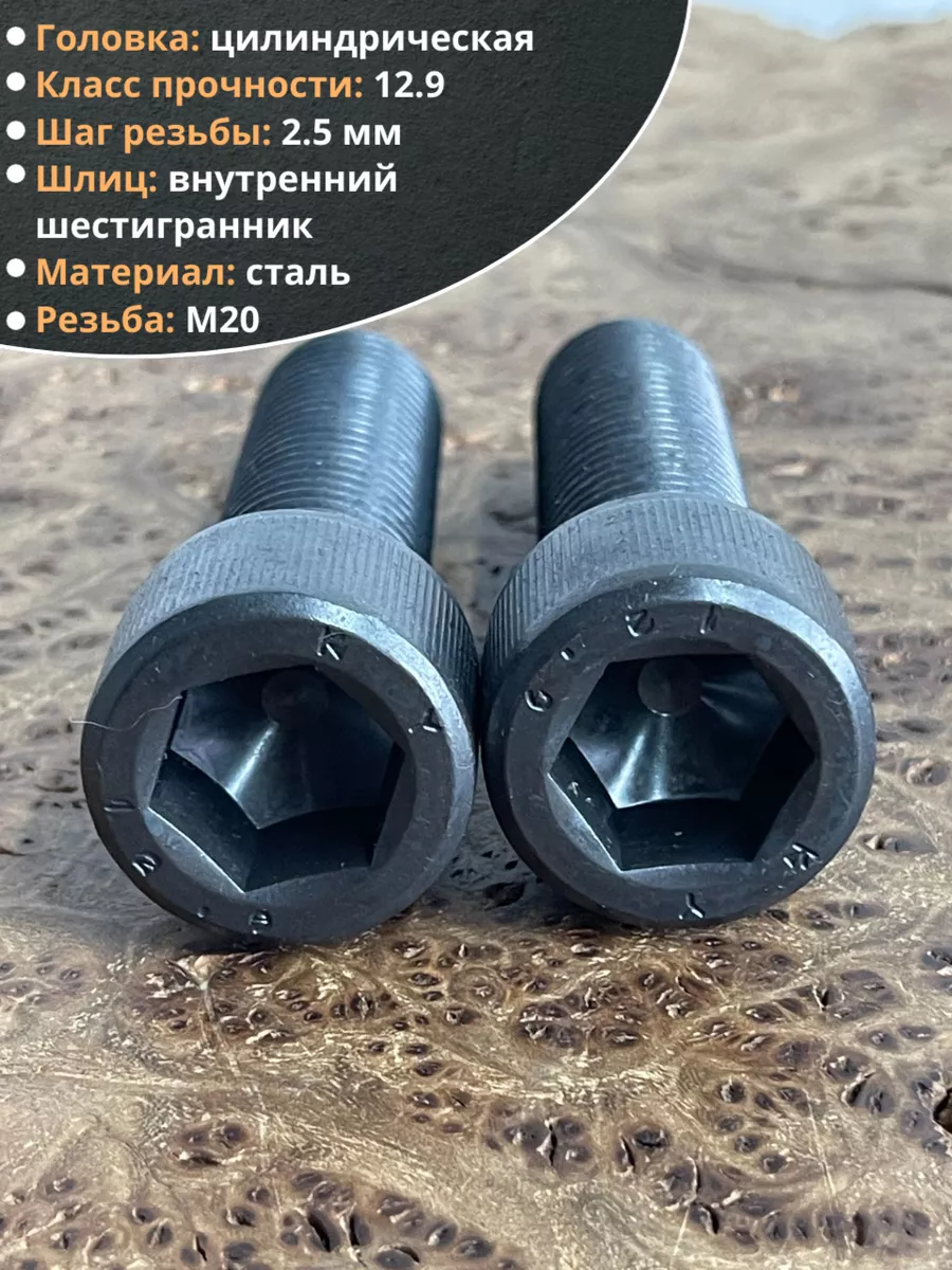 Винт высокопрочный ПР М20х70 мм к.п.12.9 черный DIN912, 2 шт.