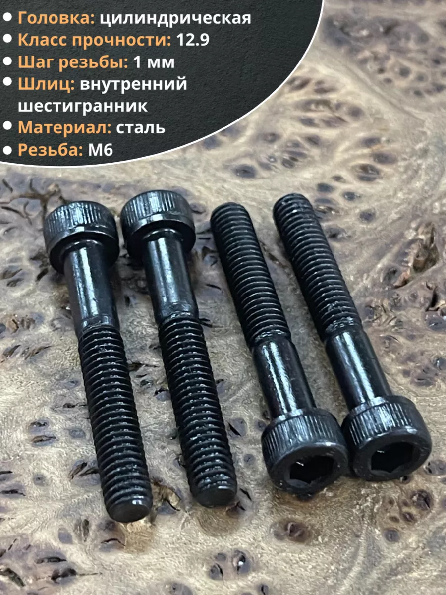Винт высокопрочный НР М6х40 мм к.п.12.9 черный DIN912, 10 шт.