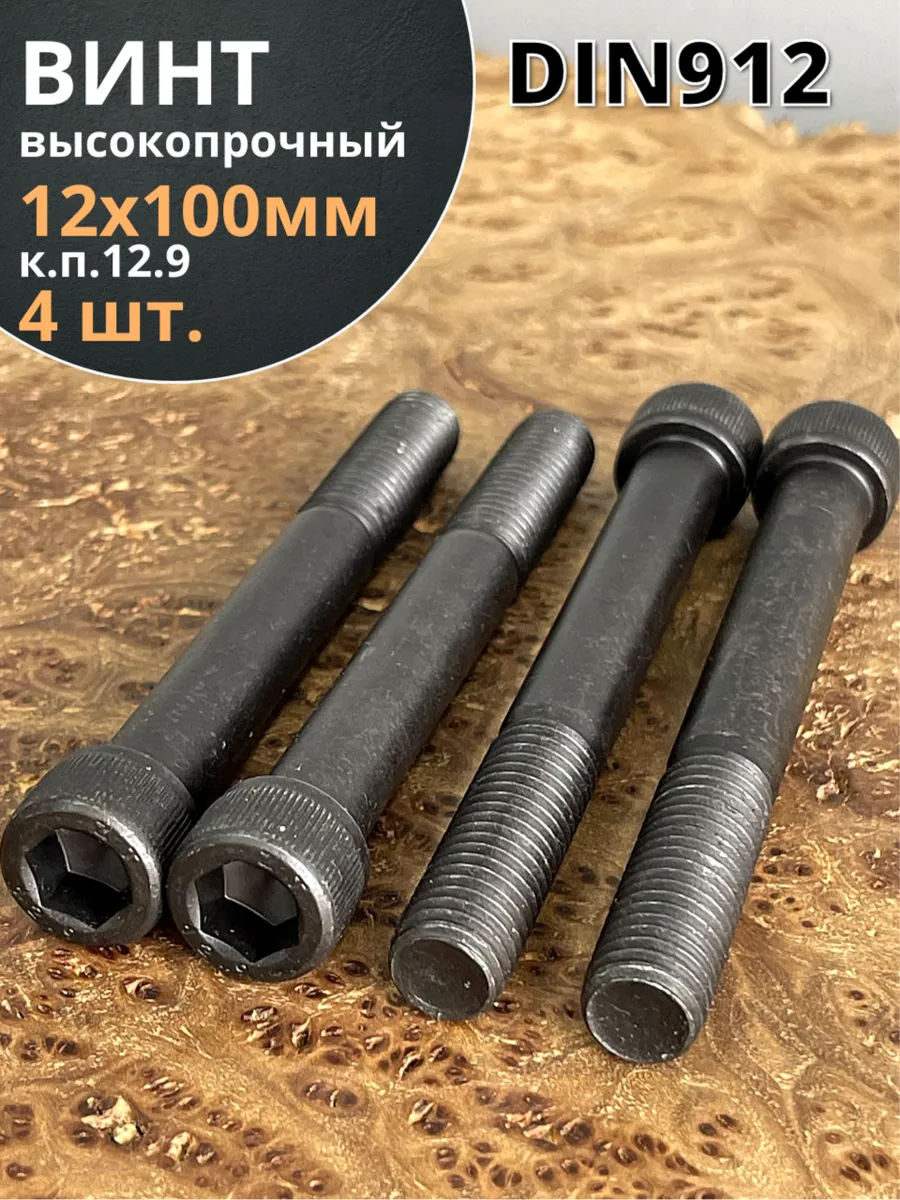 Винт высокопрочный НР М12х100 мм к.п.12.9 черный DIN912, 4 шт.