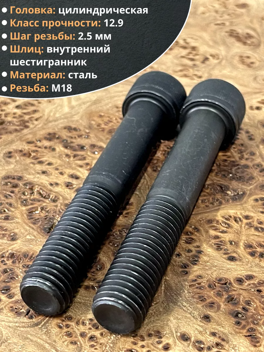 Винт высокопрочный НР М18х130 мм к.п.12.9 черный DIN912, 2 шт.