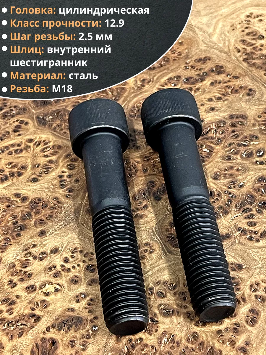Винт высокопрочный НР М18х90 мм к.п.12.9 черный DIN912, 2 шт.