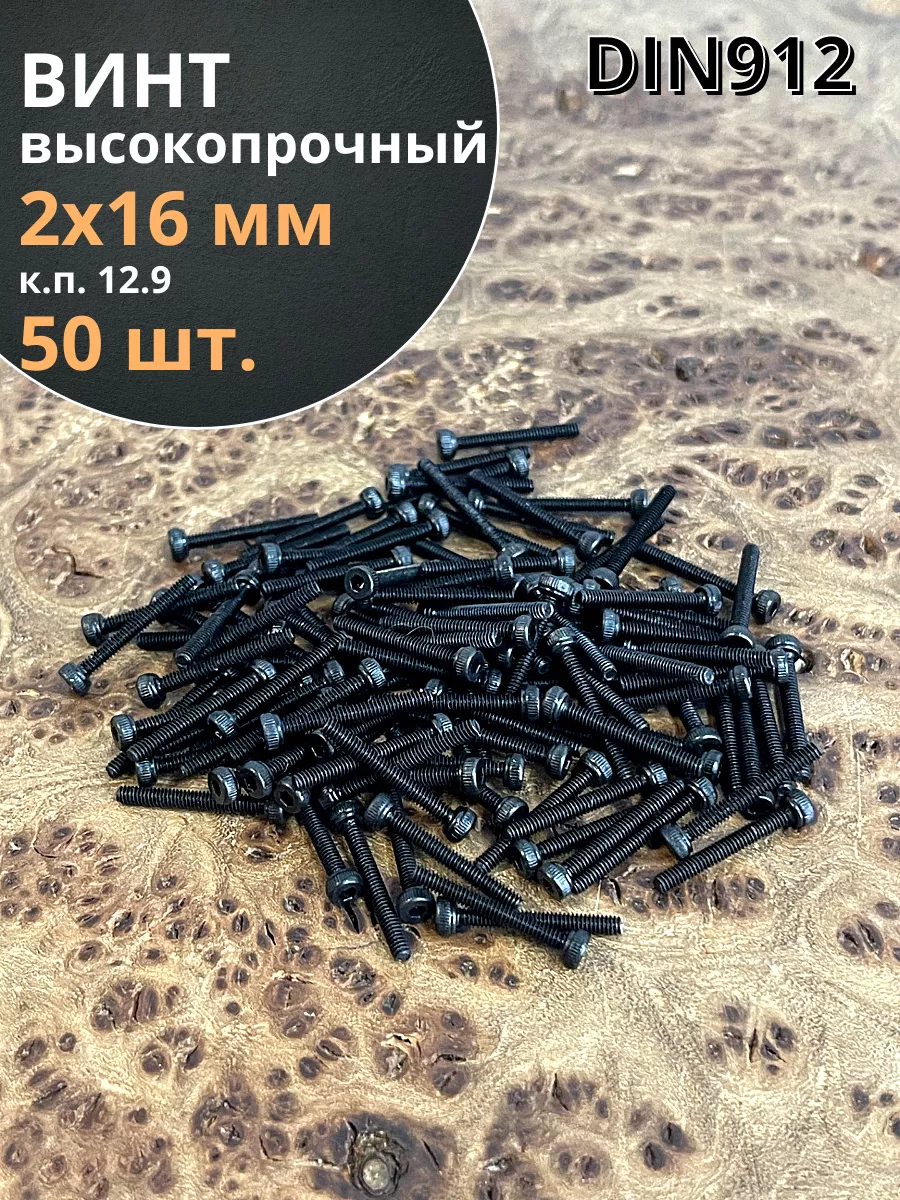 Винт высокопрочный ПР М2х16 мм к.п.12.9 черный DIN912, 50 шт.