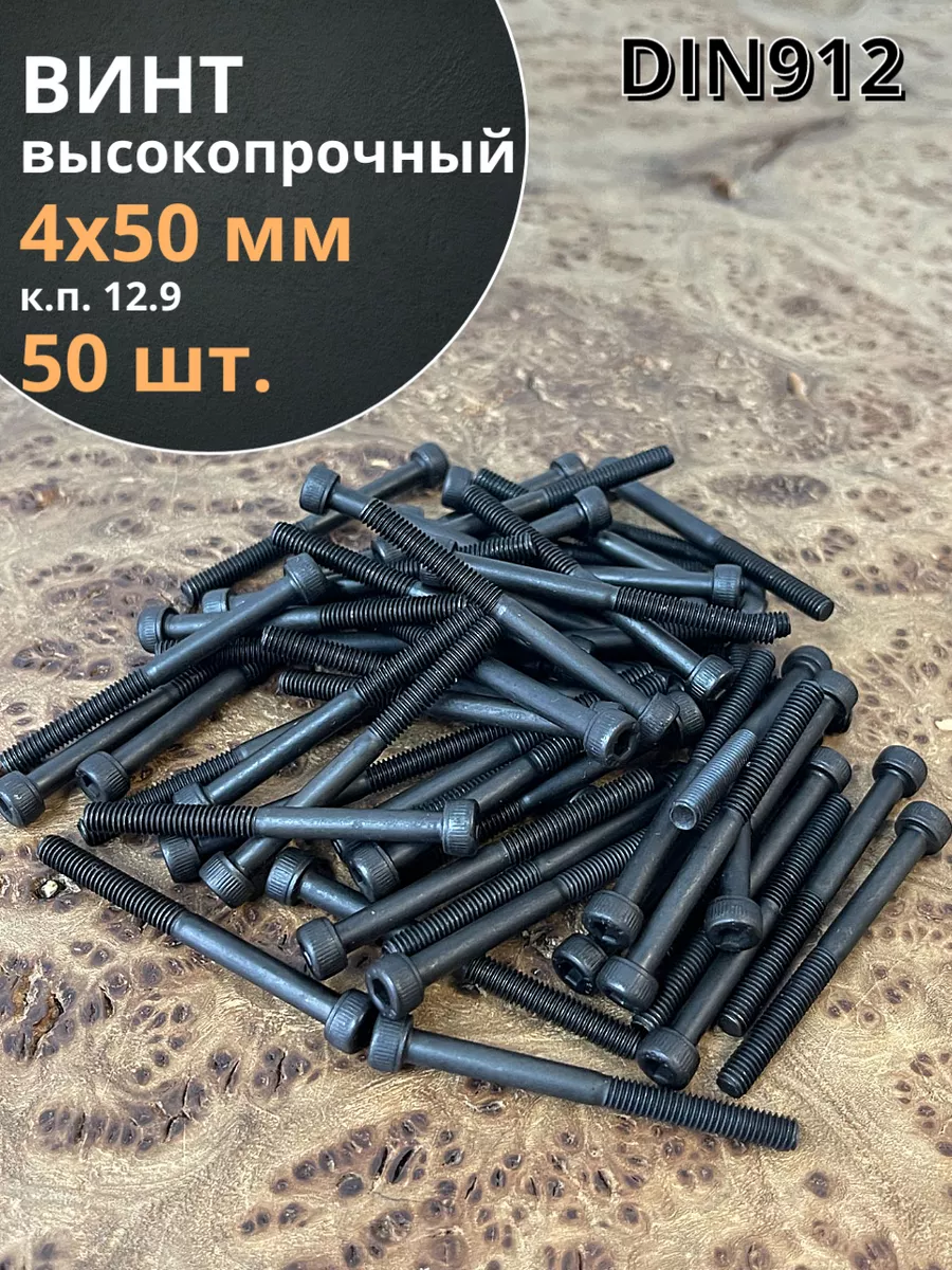 | Винт высокопрочный НР М4х50 мм к.п.12.9 черный DIN912, 10 шт. | 7193 | 1 шт. |
