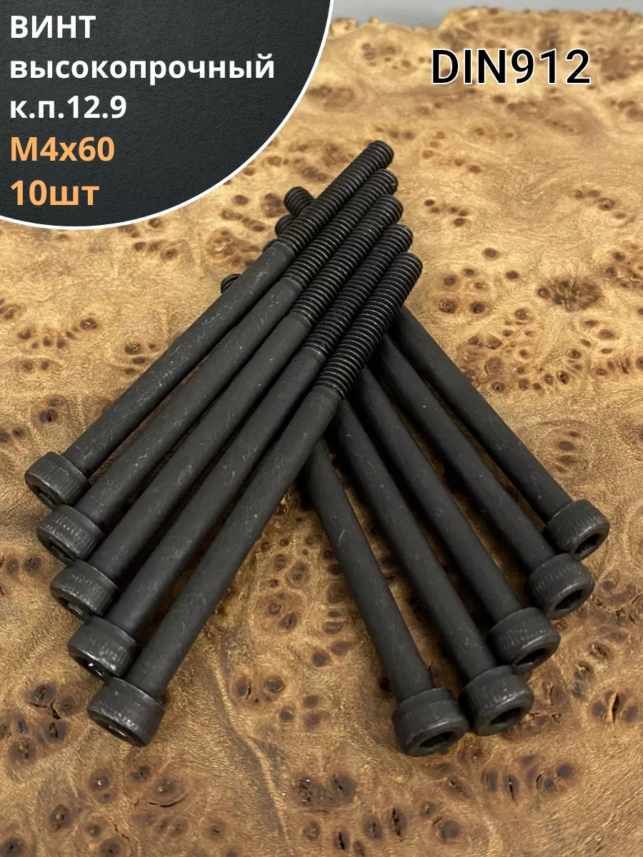 Винт высокопрочный НР М4х60 мм к.п.12.9 DIN912, 10 шт.