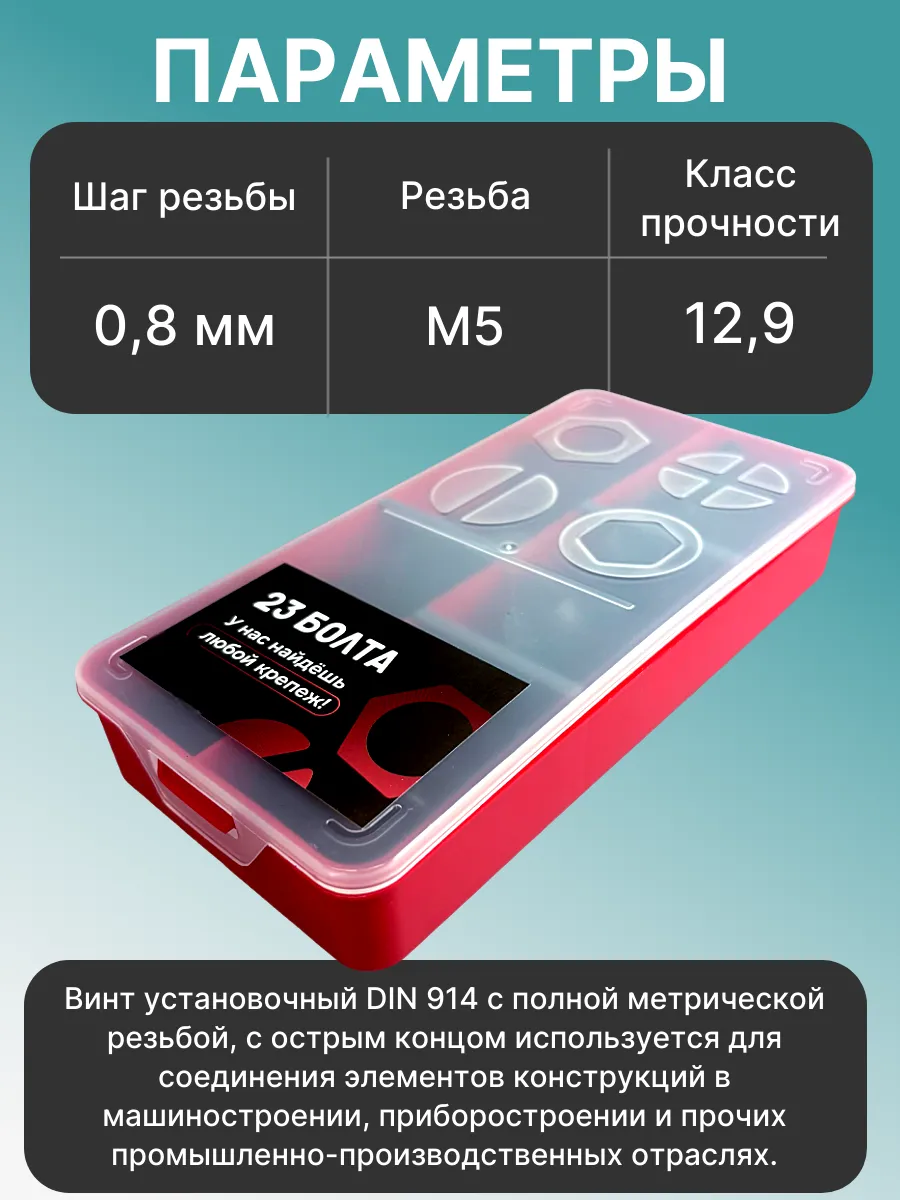 Винты гужоны М5 к.п 12.9 DIN914 в органайзере НАБОР 1
