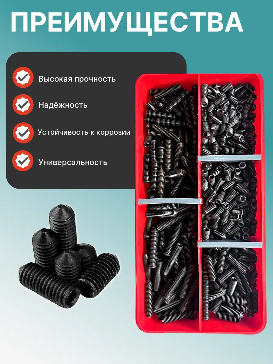 Винты гужоны М6 к.п 12.9 DIN914 в органайзере НАБОР 2