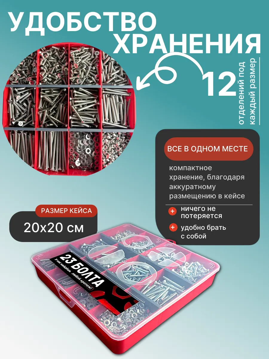 Винты нерж потай М4 DIN965 с гайкой,шайбой органайзер НАБОР4