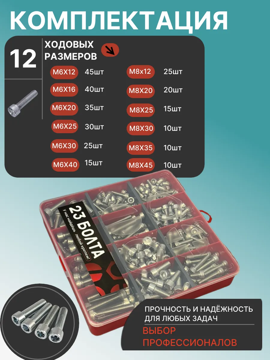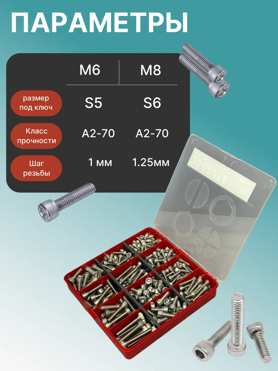 Винты нержавеющие М6 и М8 DIN912 в органайзере НАБОР 5