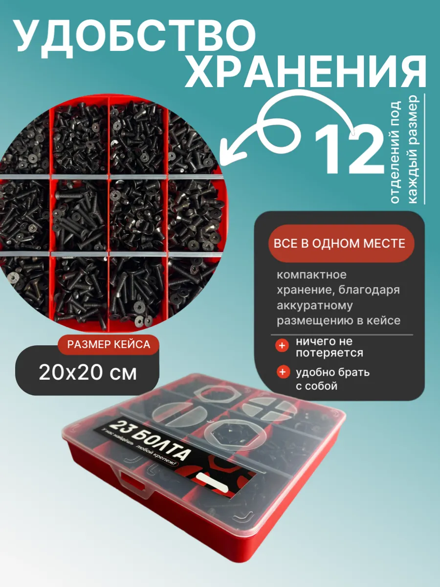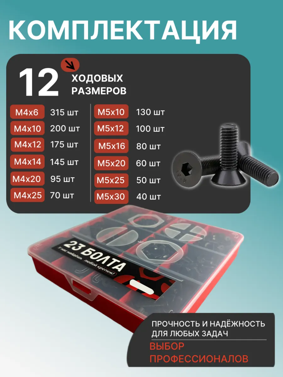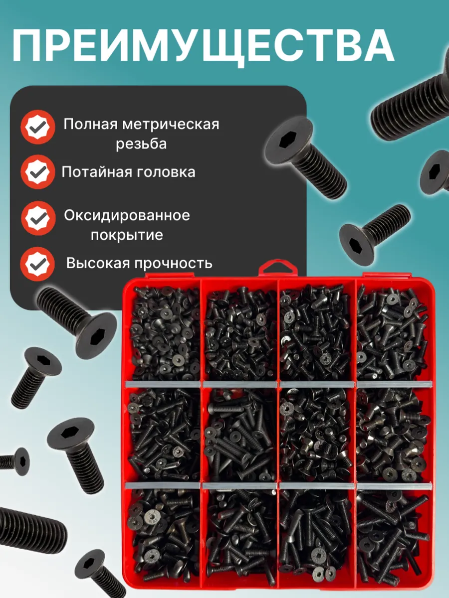 Винты потай М4 и М5 черные к.п.10.9 DIN7991 органайзер НАБОР 6