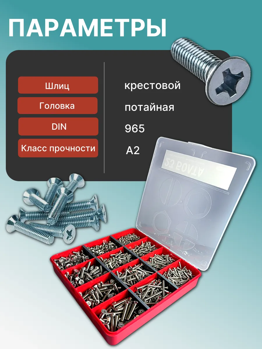 Винты потайные нержавейка М3,4,5 DIN965 в органайзере НАБОР 1