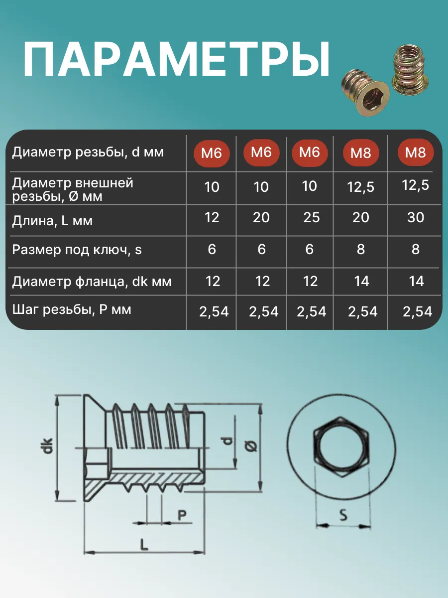 Втулка резьбовая с потайным фланцем М6х10х12 SW6 ЖЦ - 40 шт