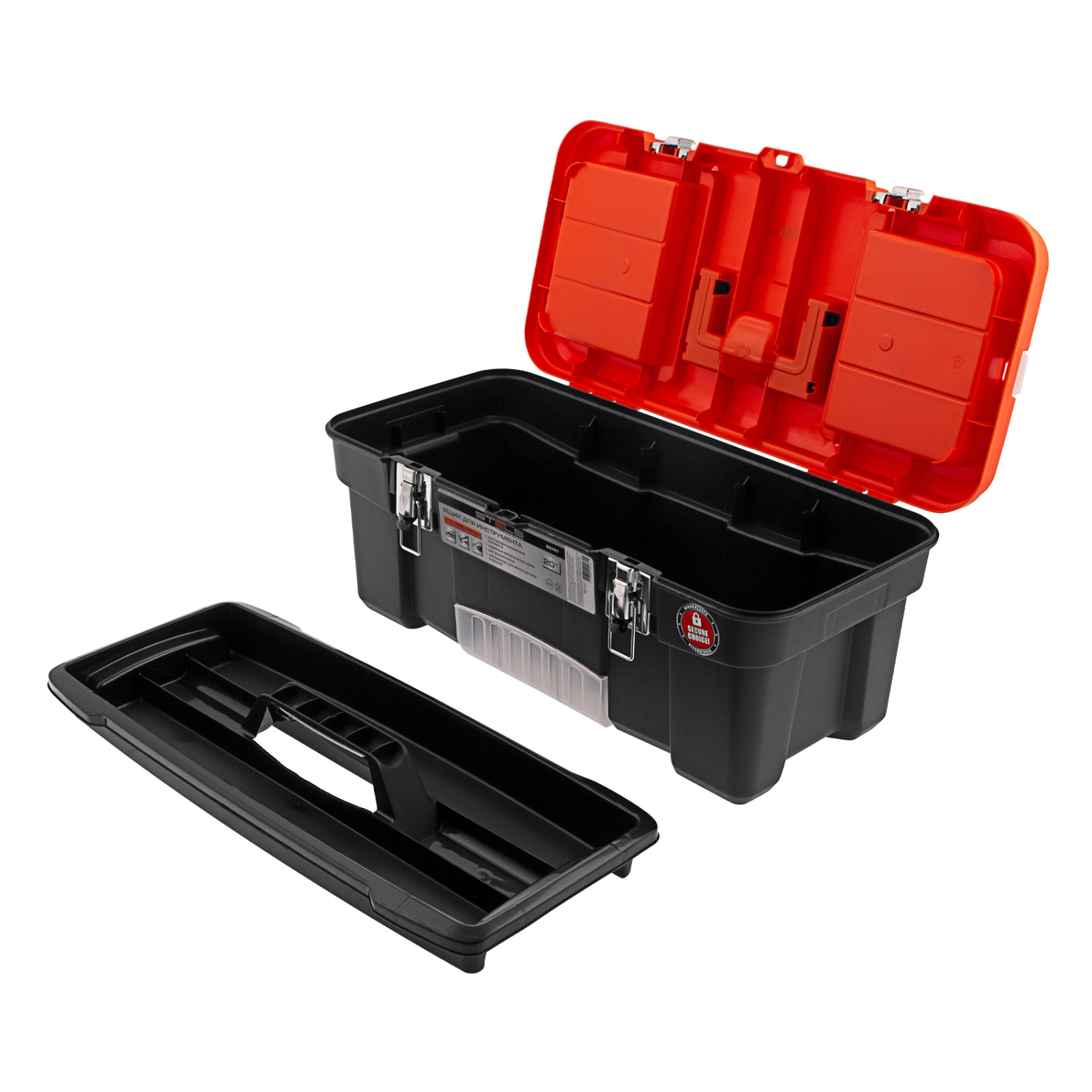 Съемный лоток с ручкой позволяет рационально организовать пространство внутри контейнера для хранения инструментов.