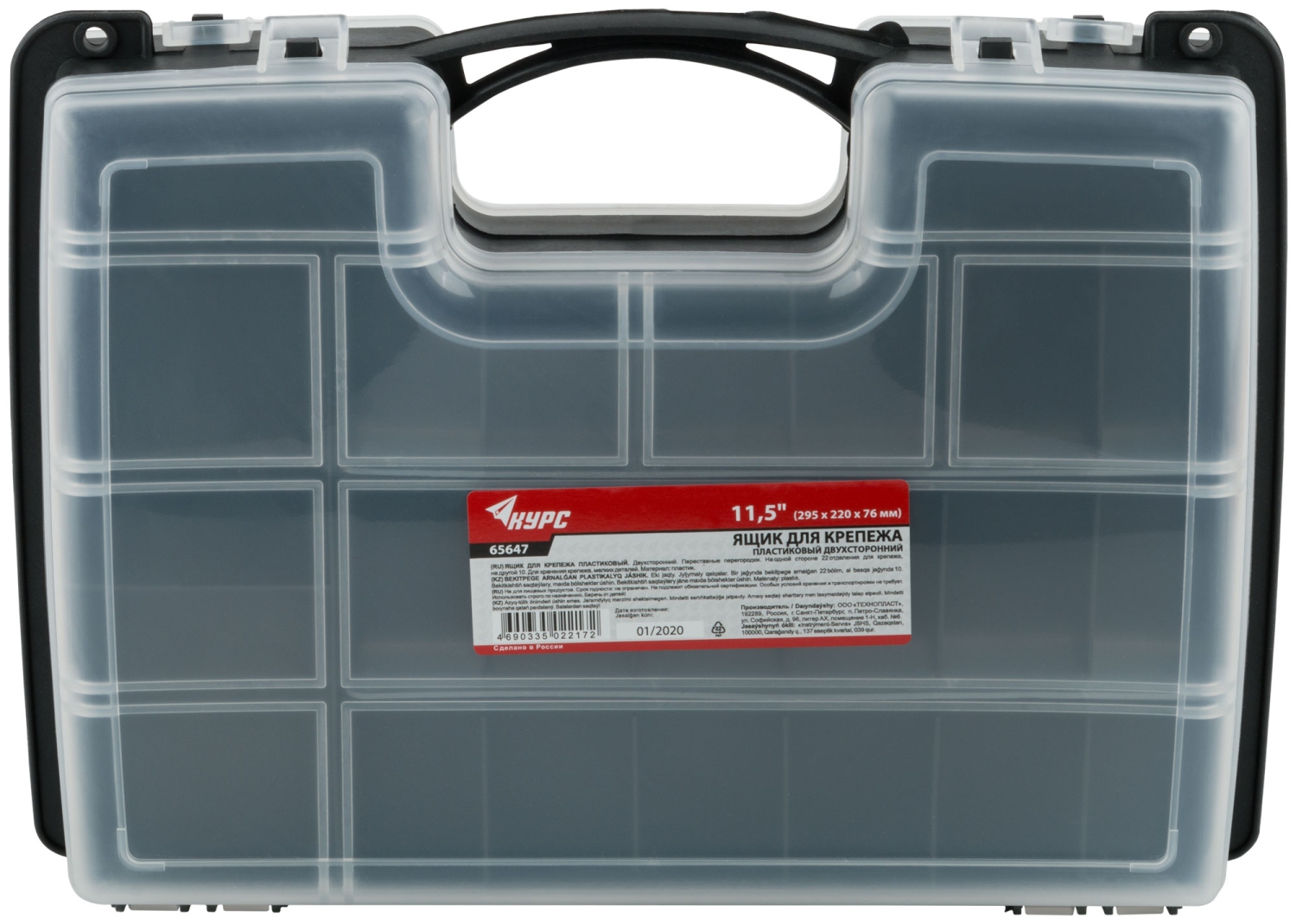 Ящик для крепежа (органайзер) двухсторонний 11,5" (29,5х22х7,6 см).
