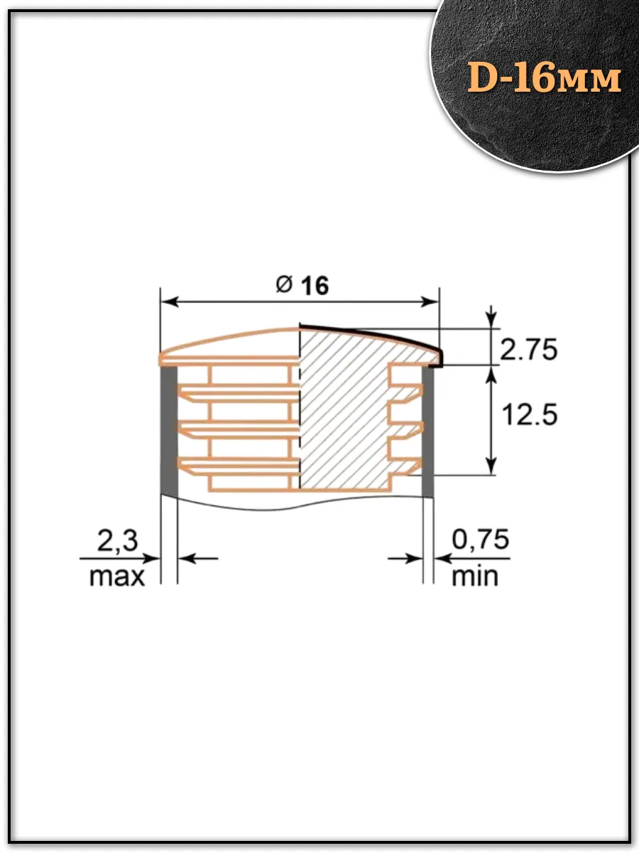 | Заглушка для труб круглая d-16 мм хромированная, 2 шт. | 28-0005ф2 | 1 шт. |