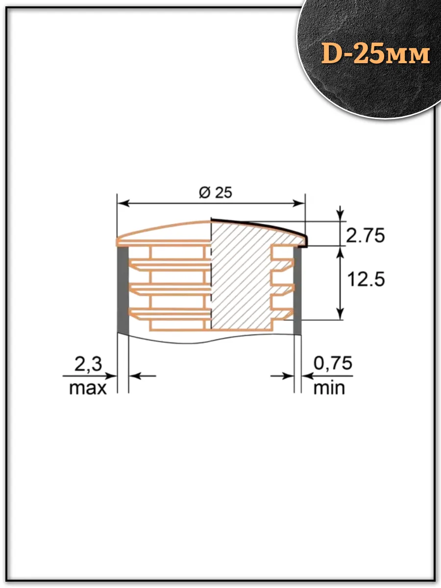 | Заглушка для труб круглая d-25 мм хромированная, 2 шт. | 28-0040ф2 | 1 шт. |