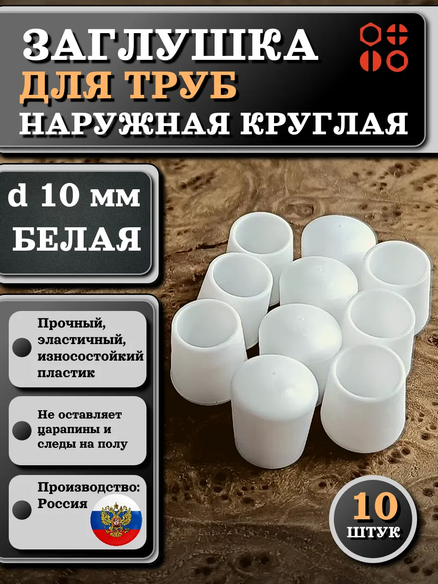 Заглушка для труб наружная круглая d 10 мм белая, 10 шт