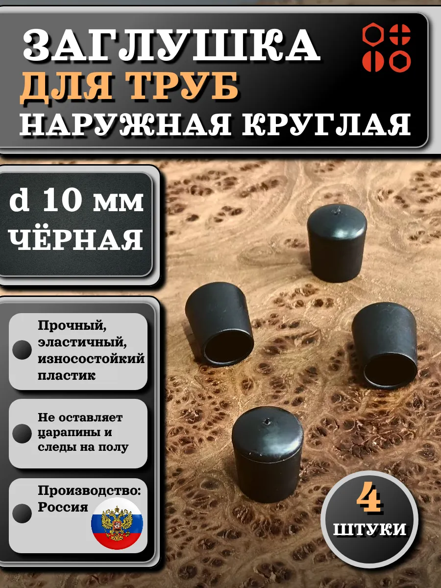 Заглушка для труб наружная круглая d 10 мм черная, 4 шт
