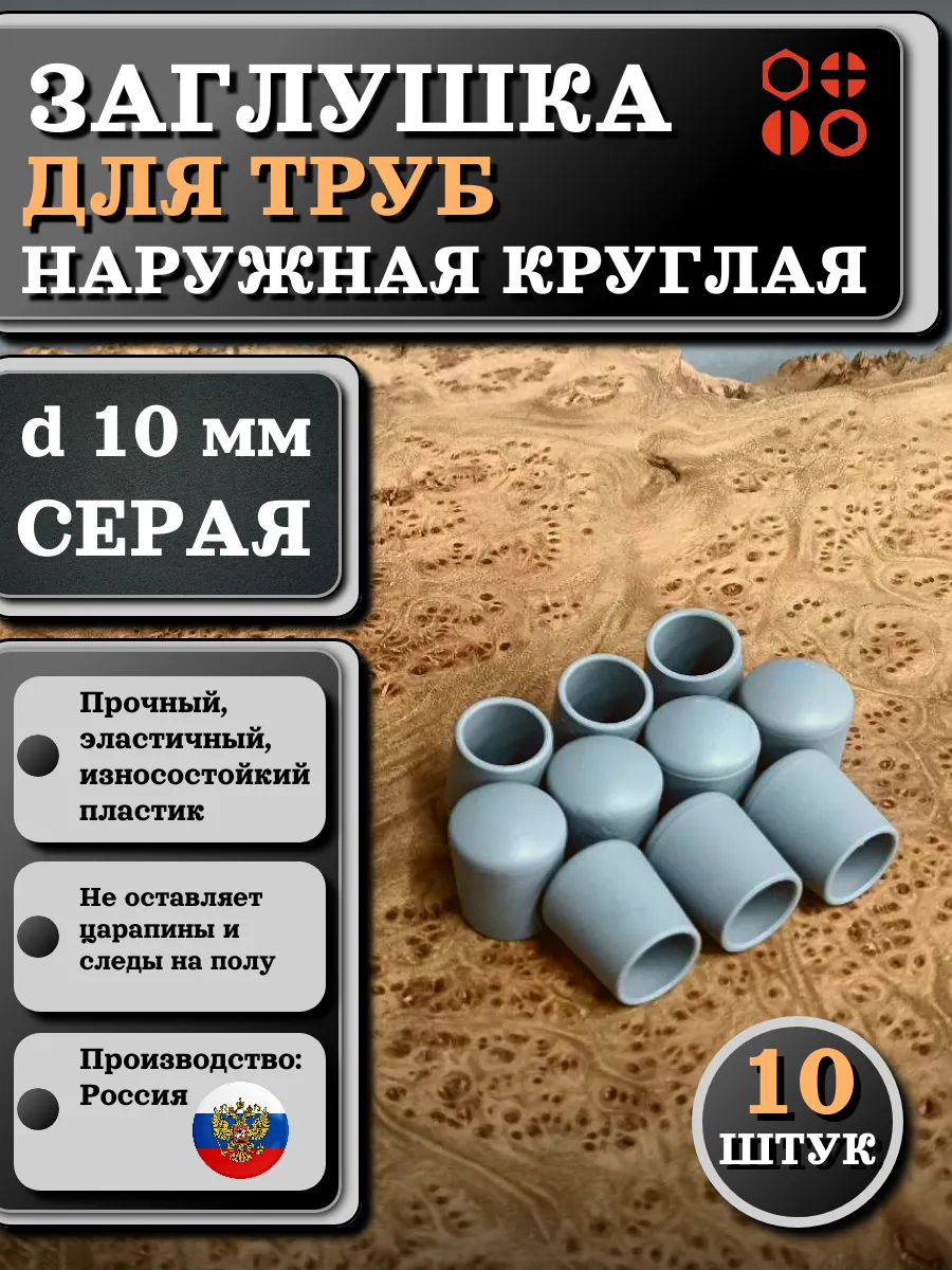 Заглушка для труб наружная круглая d 10 мм серая, 10 шт
