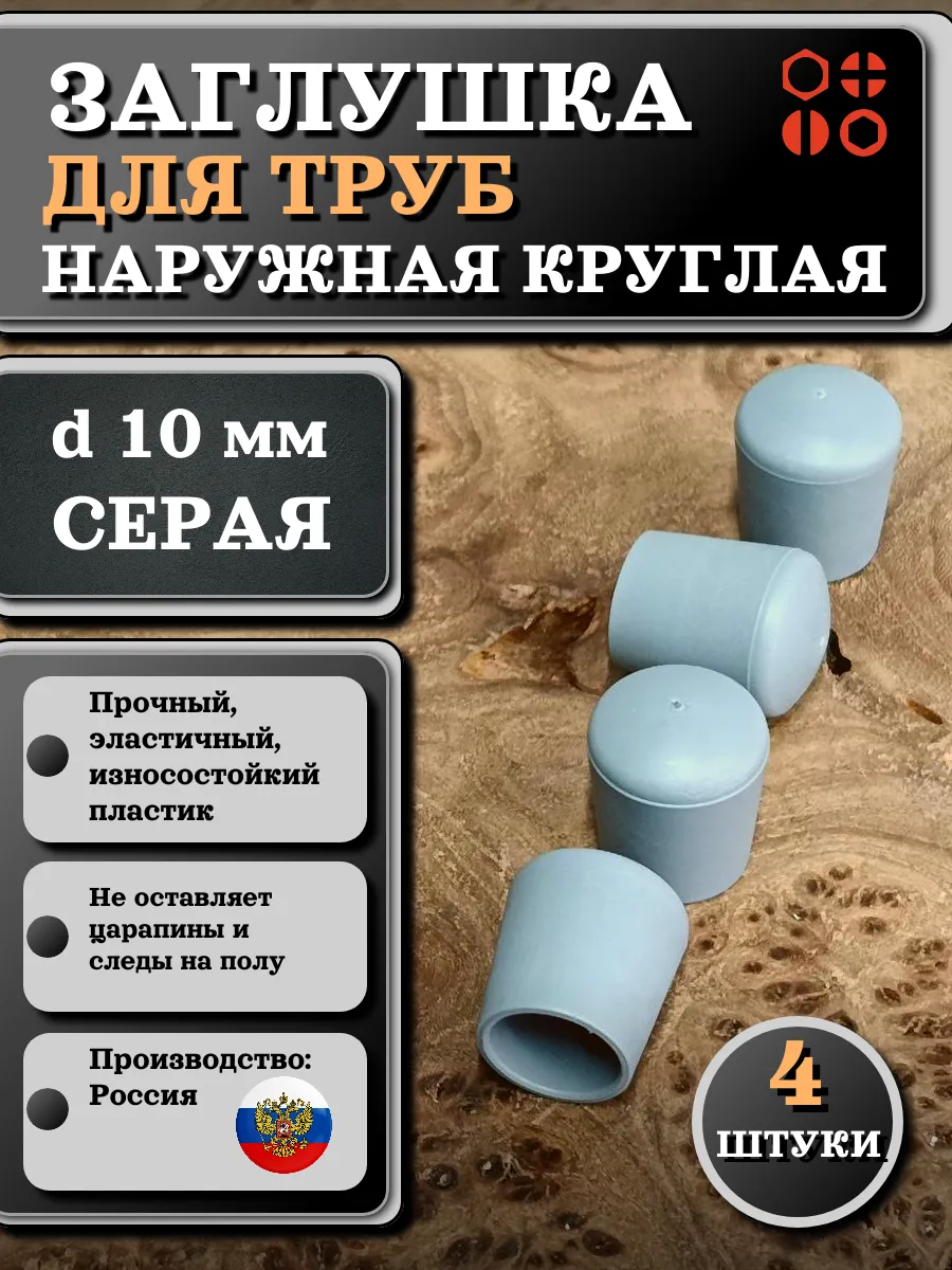 Заглушка для труб наружная круглая d 10 мм серая, 4 шт