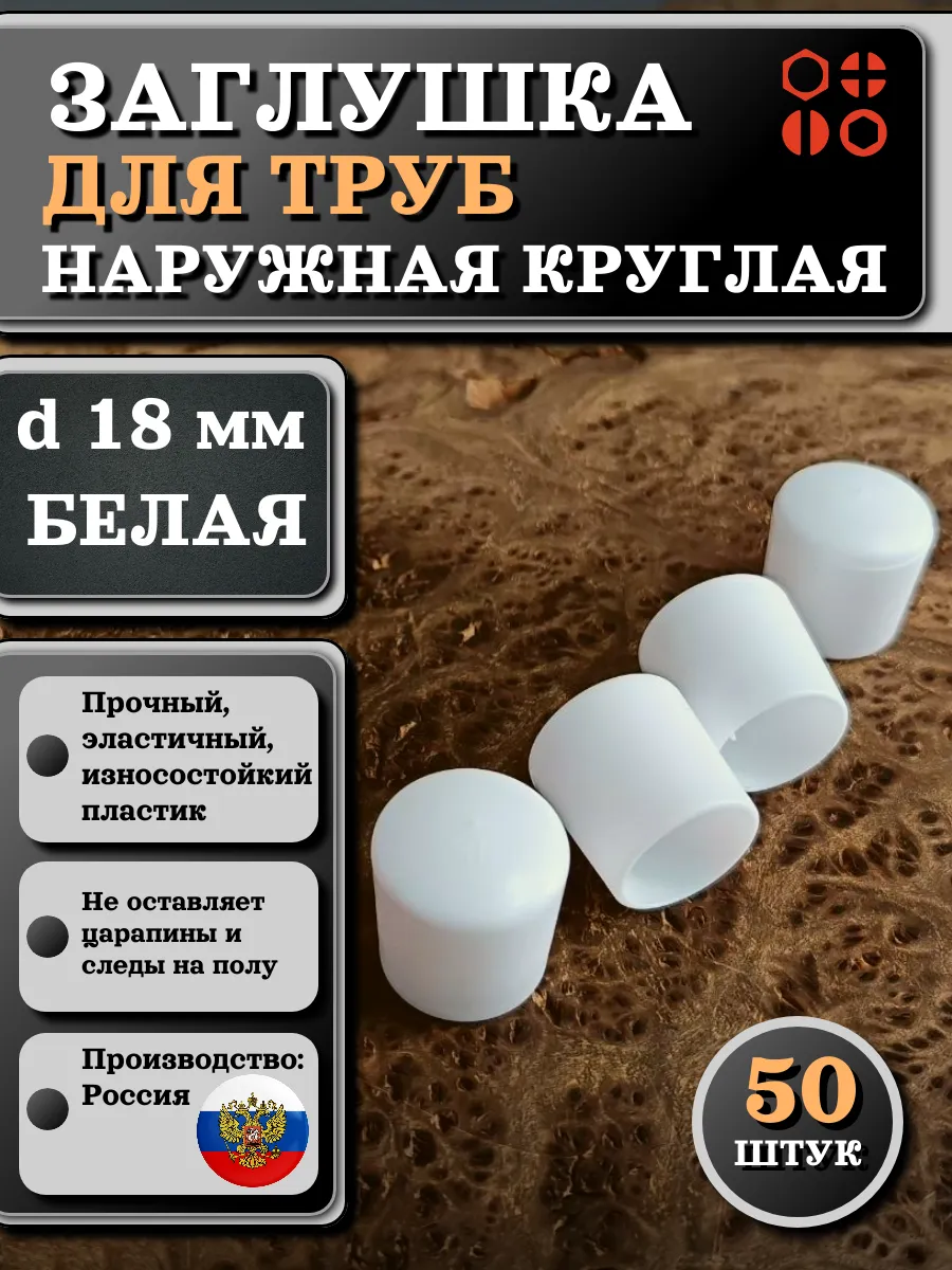 Заглушка для труб наружная круглая d 18 мм белая, 50 шт