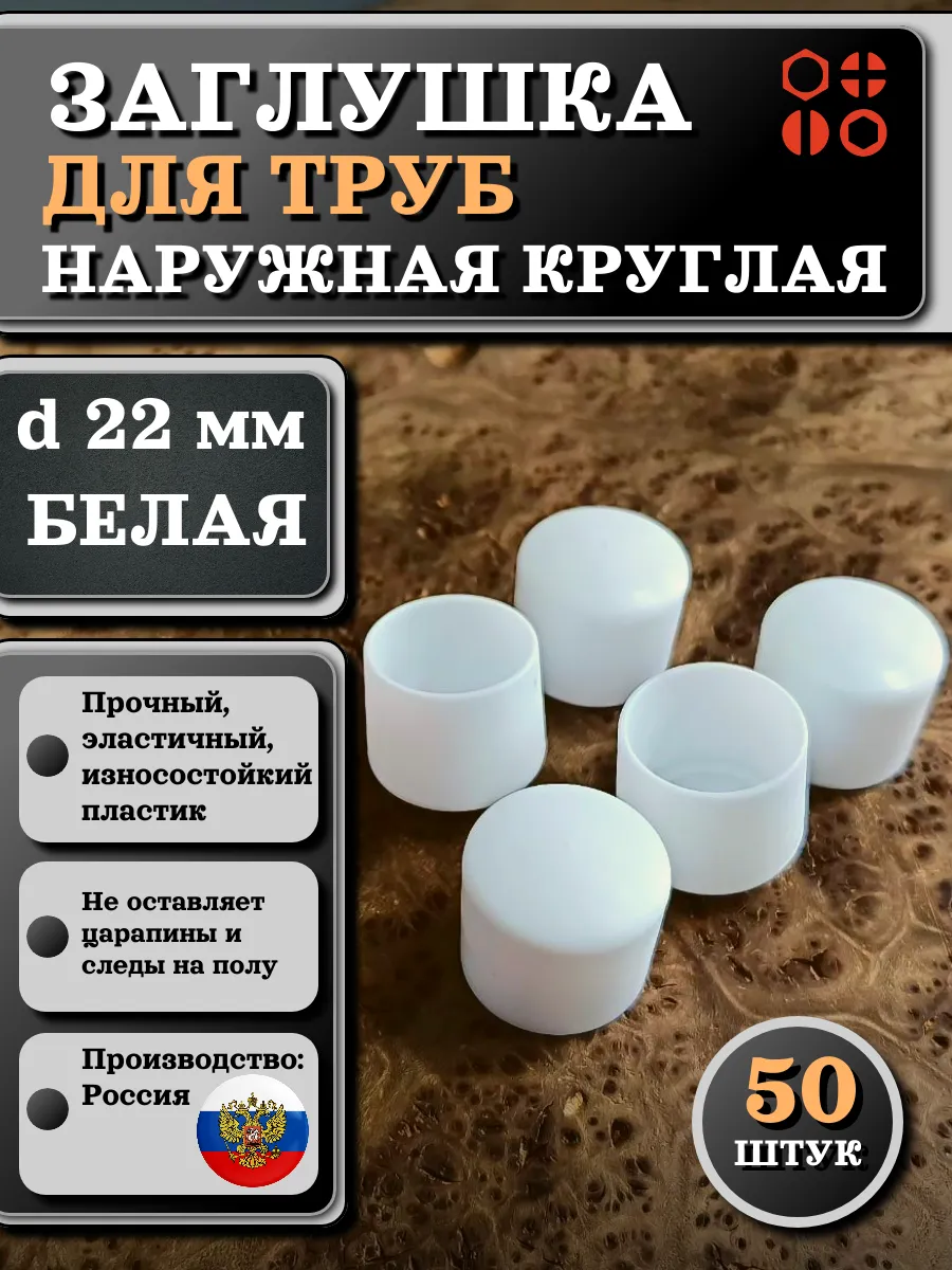Заглушка для труб наружная круглая d 22 мм белая, 50 шт