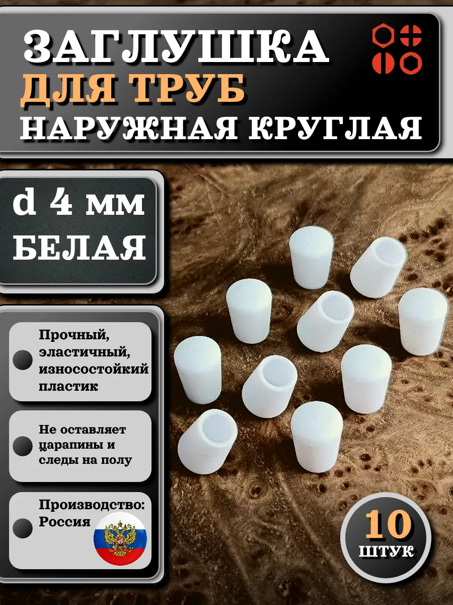 Заглушка для труб наружная круглая d 4 мм белая, 10 шт