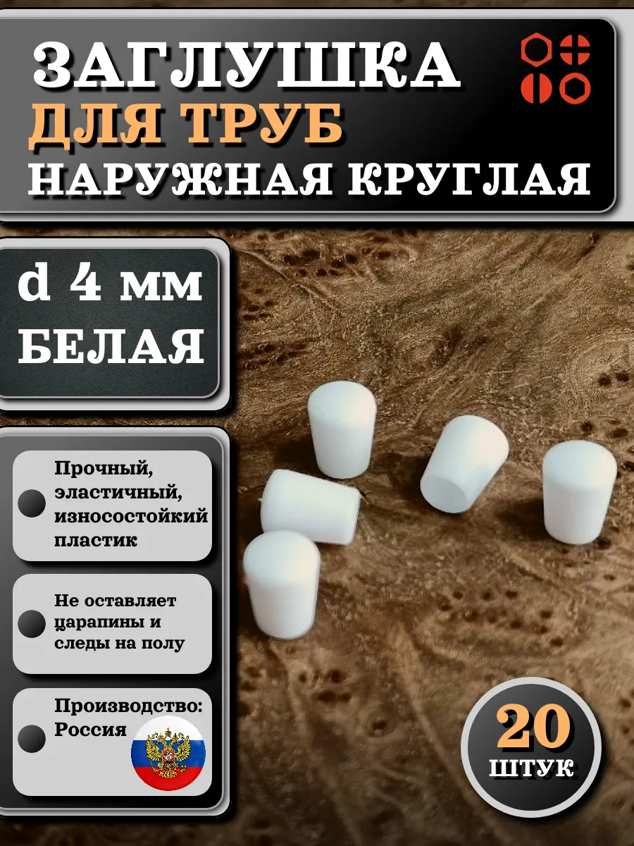 Заглушка для труб наружная круглая d 4 мм белая, 20 шт