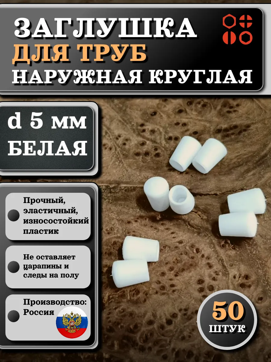 Заглушка для труб наружная круглая d 5 мм белая, 50 шт