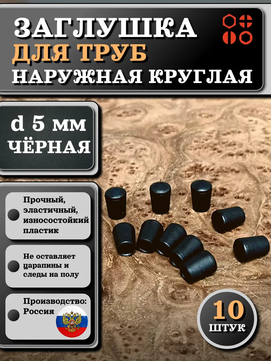 Заглушка для труб наружная круглая d 5 мм черная, 10 шт