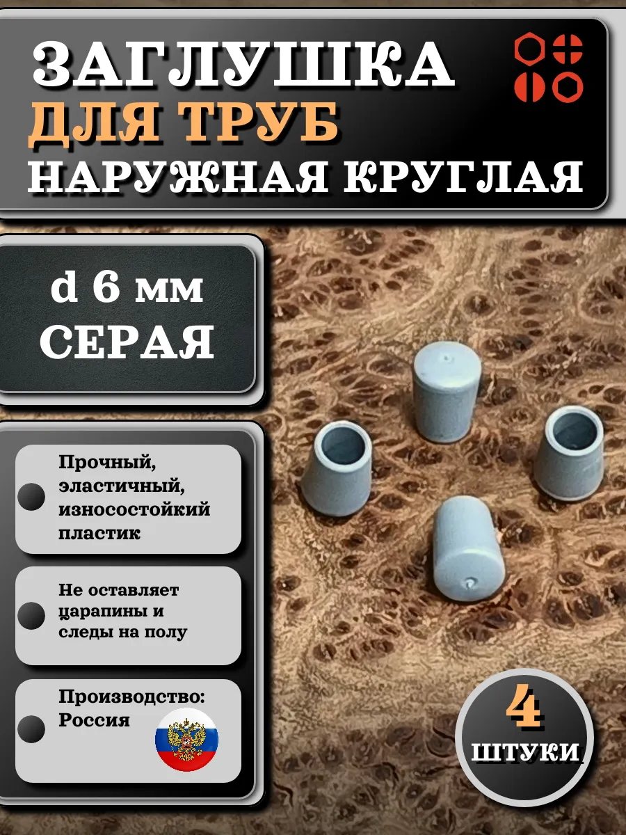 Заглушка для труб наружная круглая d 6 мм серая, 4 шт