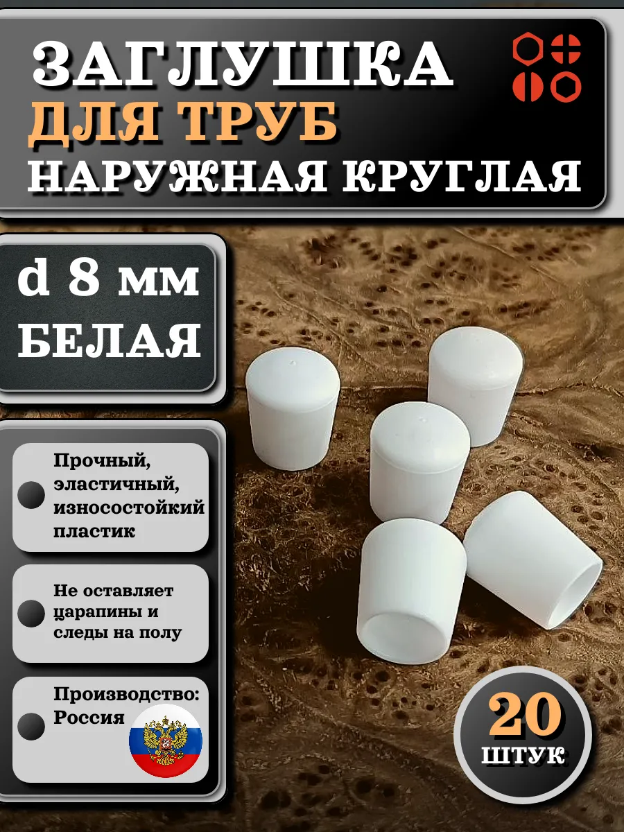 Заглушка для труб наружная круглая d 8 мм белая, 20 шт