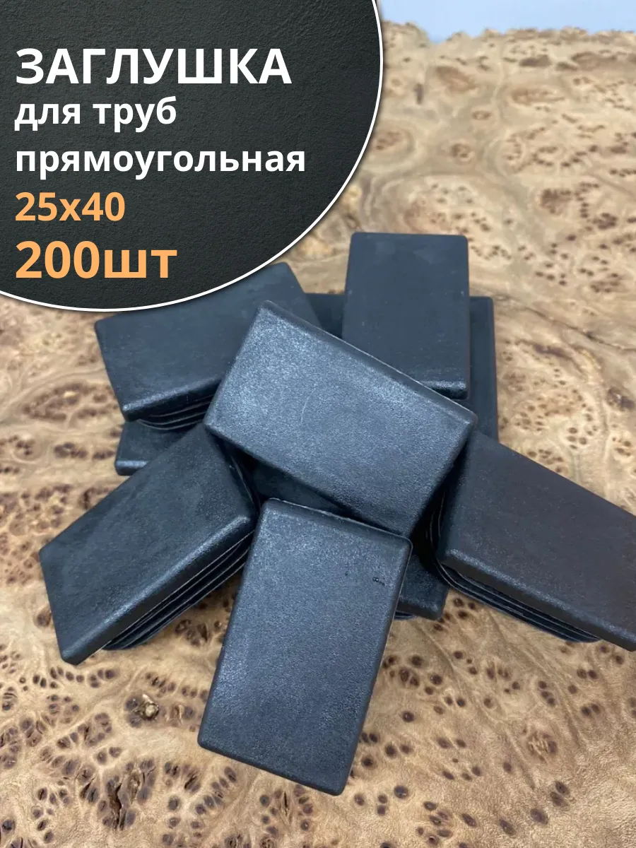 Заглушка для труб прямоугольная 25х40 мм черная, 200 шт.