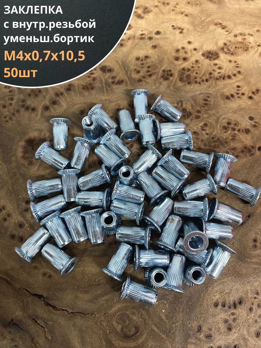 Заклепка резьбовая М4 х0,7х10,5 уменьшенный бортик, 50 шт