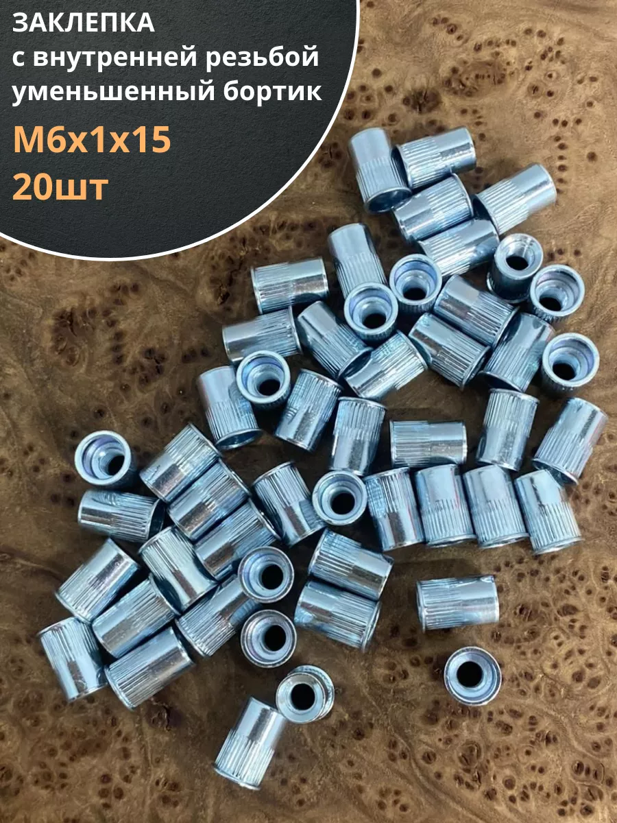 Заклепка М6х1х15 мм с внутр. резьбой, уменьш.бортик, 20 шт.