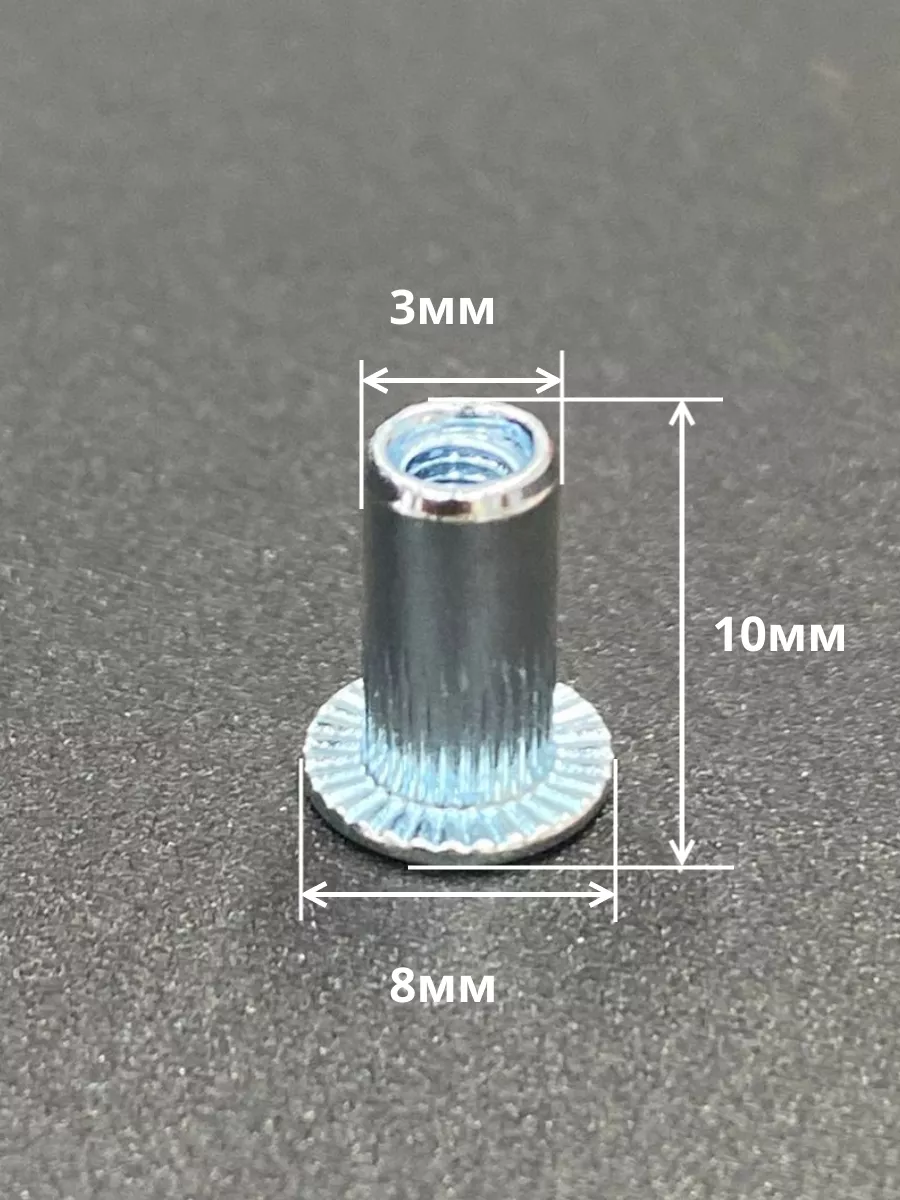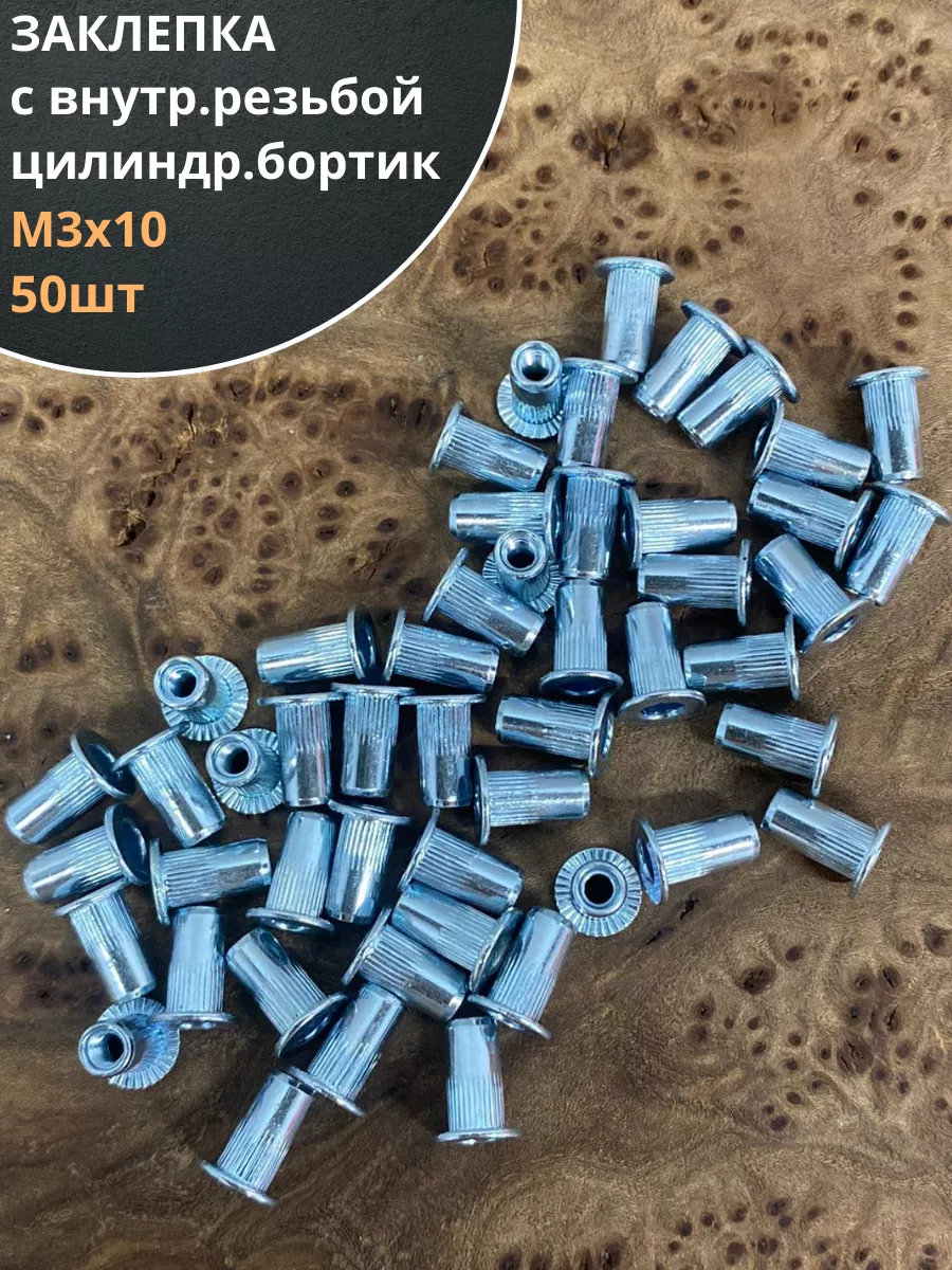 Заклепка резьбовая М3 х10 цилиндрический бортик, 50 шт.