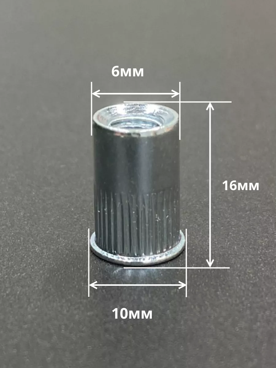 Заклепка резьбовая М6 х1,0х16 уменьшенный бортик, 50шт