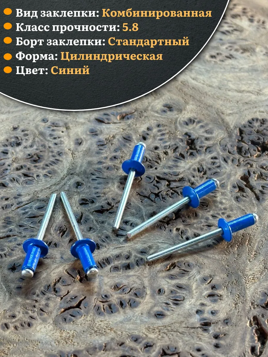 Заклепка вытяжная М4х10 алюминий сталь RAL5005 синий , 50 шт.