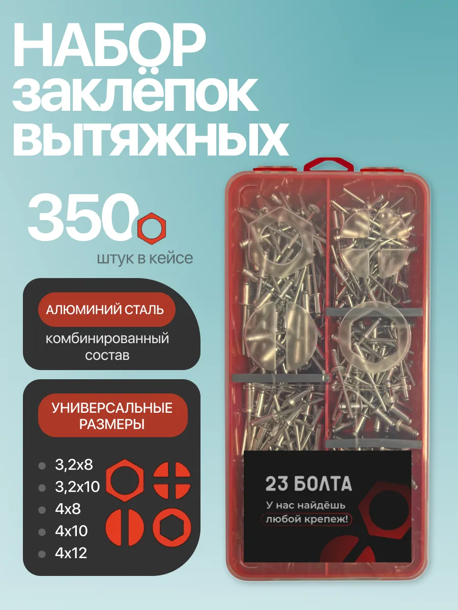 Заклепки вытяжные М3,2 и М4 в органайзере НАБОР 1