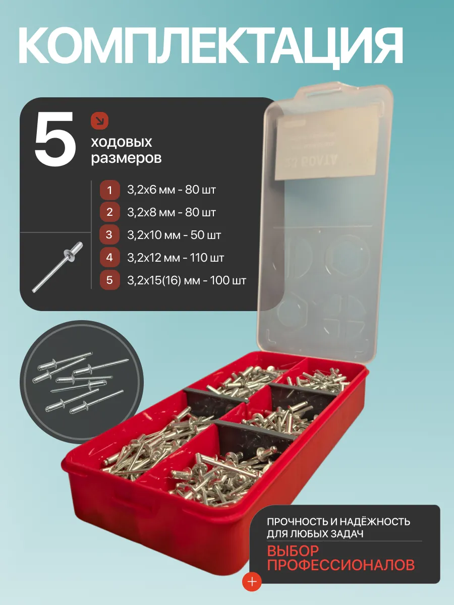 Заклепки вытяжные М3,2 в органайзере НАБОР 1