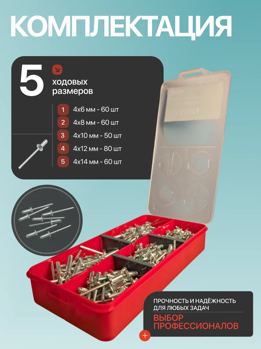 Заклепки вытяжные М4 в органайзере НАБОР 1