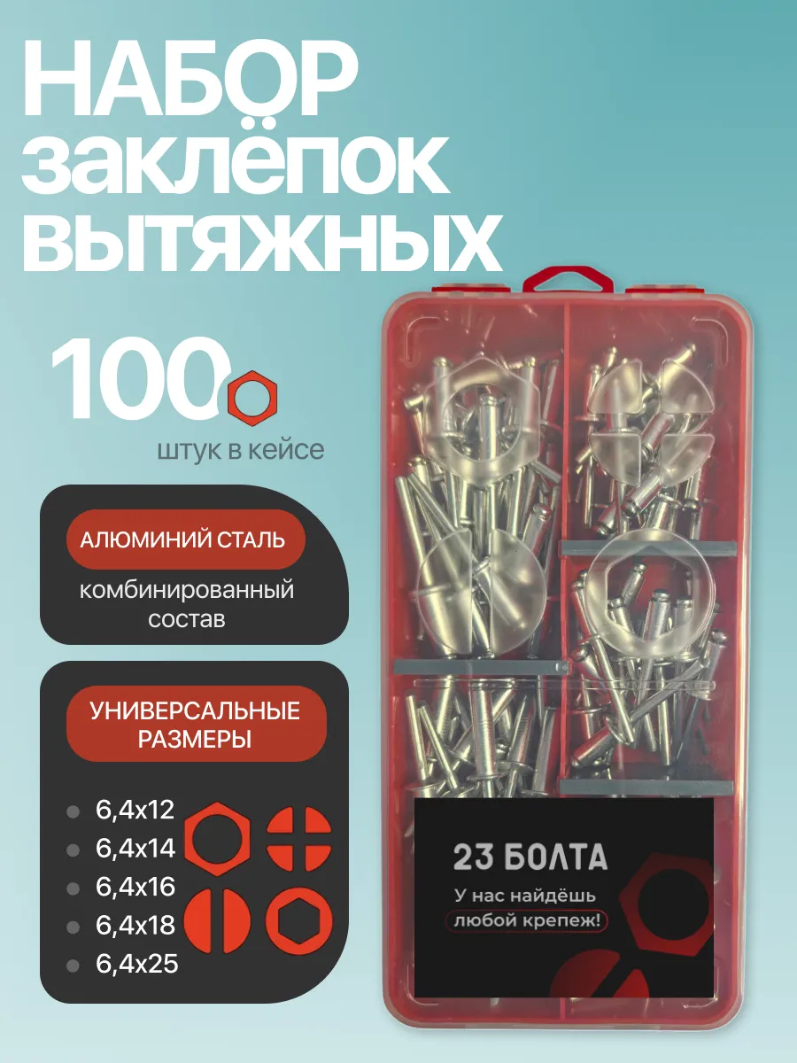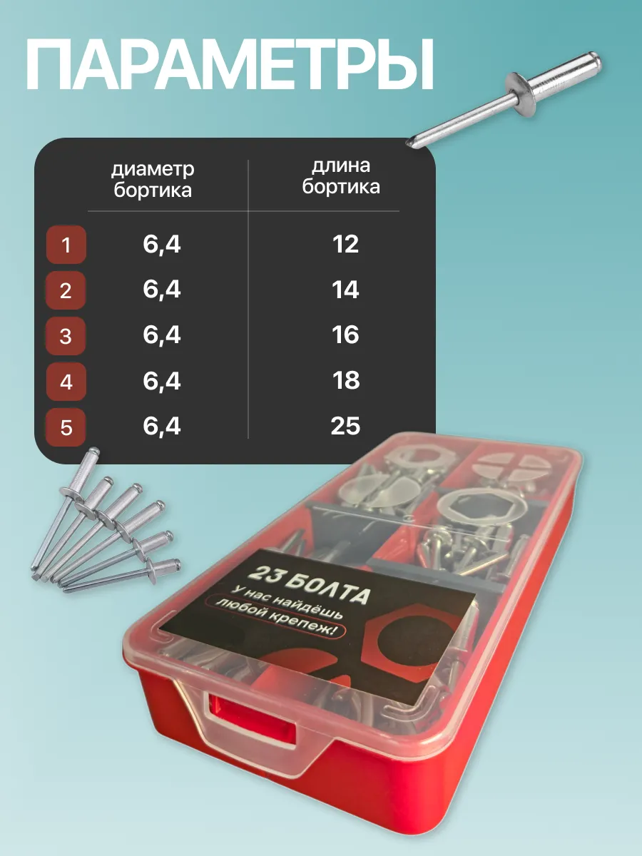 Заклепки вытяжные М6,4 в органайзере НАБОР 1