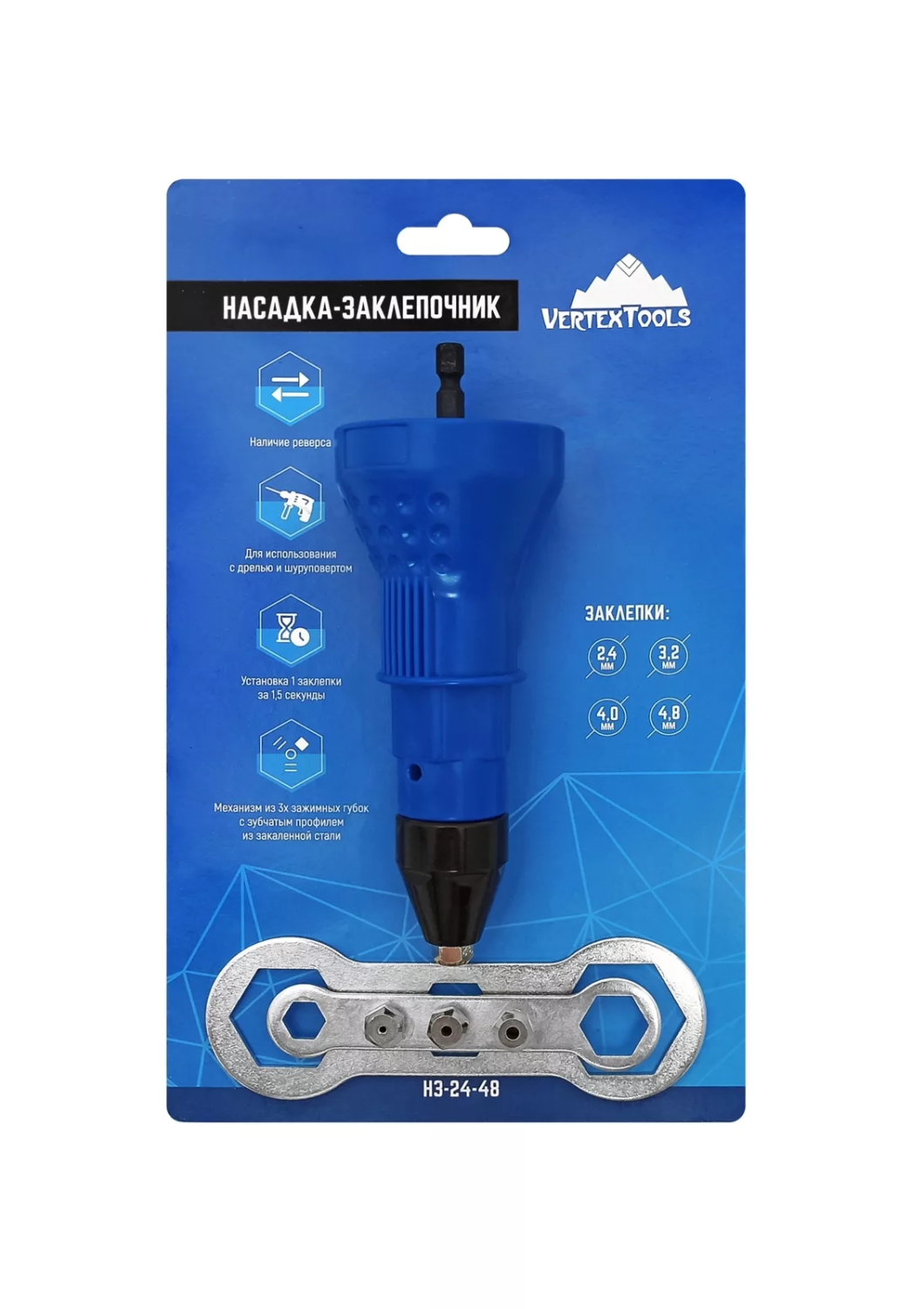 Насадка для шуруповерта заклепочник шестиргр. хвост. 2,4-3,2-4,0-4,8 мм